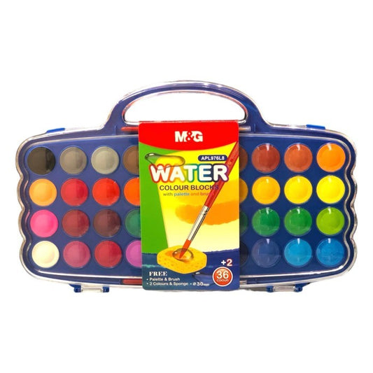 ألوان مائية صلبة من إم آند جي مع لوحة ألوان وفرشاة، 36 لونًا + لونين إضافيين، رقم المنتج: APL976L8