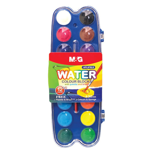ألوان مائية صلبة من إم آند جي مع لوحة ألوان وفرشاة، 12+2 لون، رقم المنتج: APL976L6