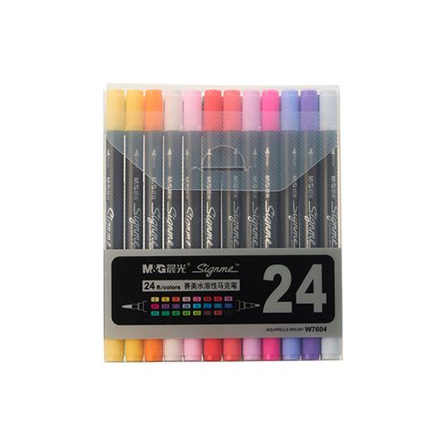 أقلام تحديد متنوعة من إم آند جي برأسين مزدوجين رفيعين - 24 لونًا