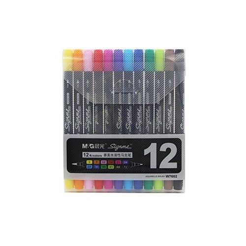 أقلام تحديد متنوعة من إم آند جي برأسين مزدوجين رفيعين - 12 لونًا