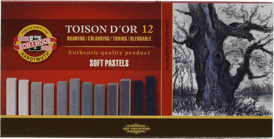 مجموعة أقلام تلوين باستيل ناعمة من كوه-إي-نور، 12 قلمًا، لون رمادي، رقم: 8592