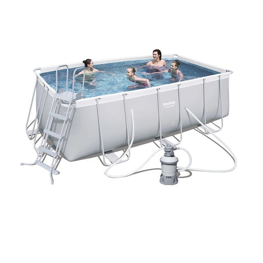 مجموعة حمام سباحة مستطيل من الفولاذ المقاوم للصدأ من بيست واي، أبعادها 4.12 متر × 2.01 متر × 1.22 متر - رقم: 56457