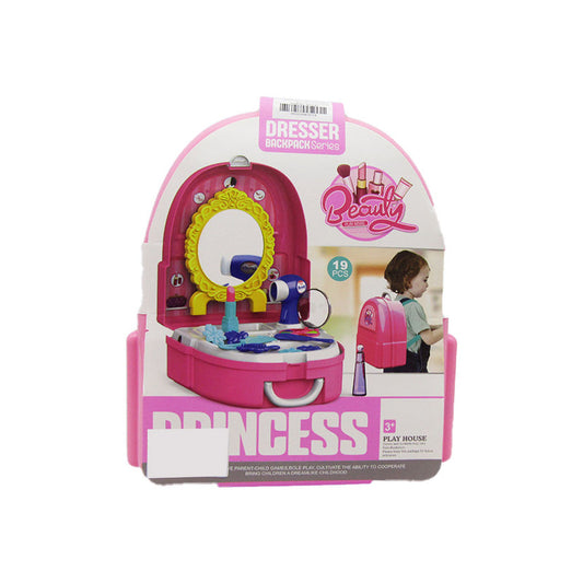 مجموعة ألعاب خزانة ملابس الأميرة - بيت لعب تجميلي - حقيبة ظهر - 19 قطعة - رقم: 703