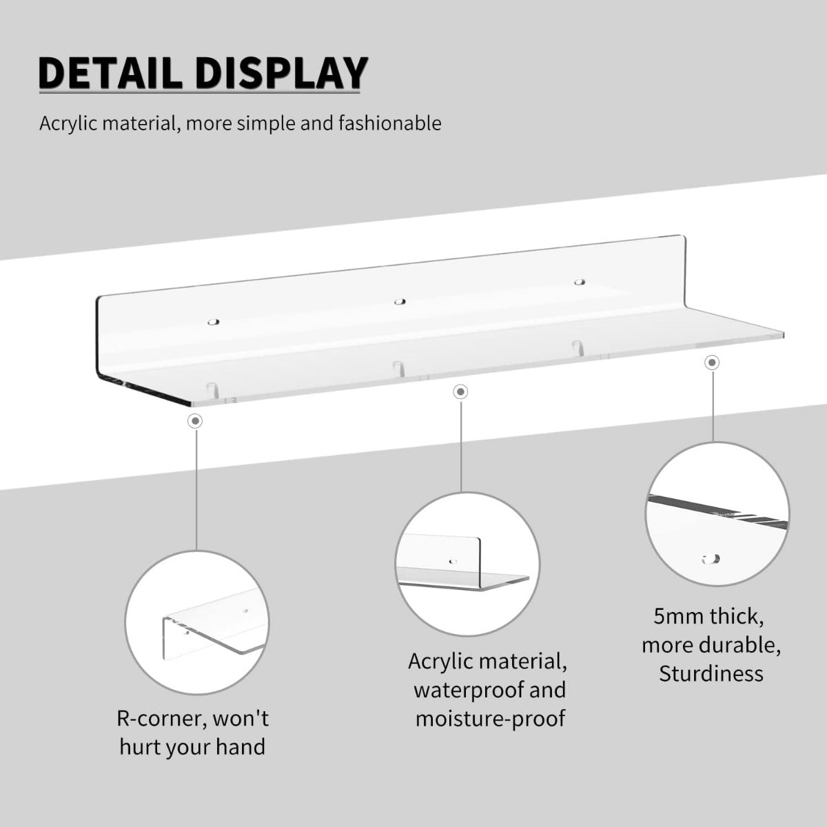 أرفف حائط أكريليك مقاس 24 بوصة للتخزين والتنظيم (أبيض، 24 بوصة)