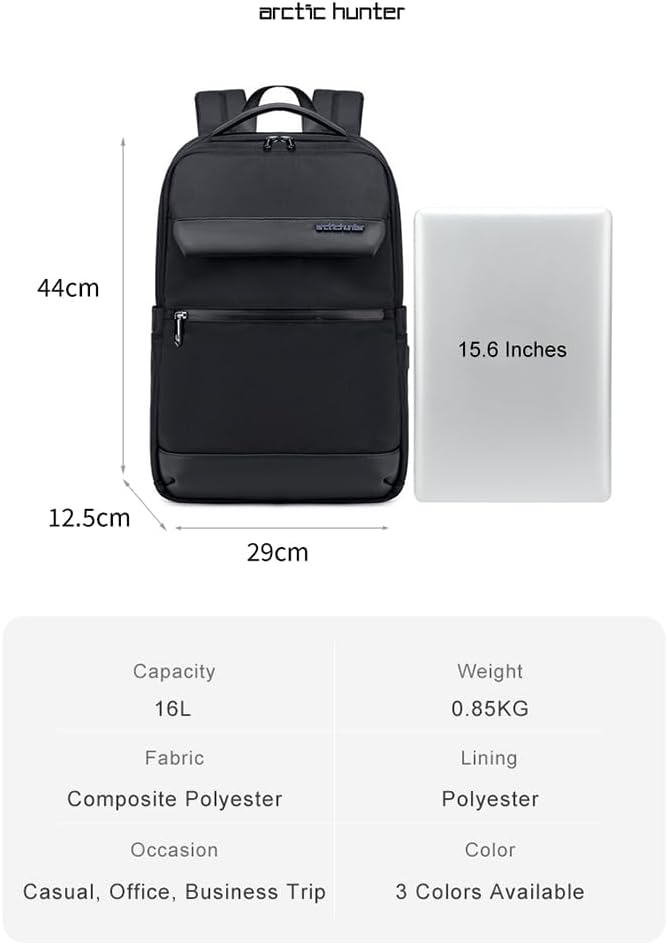 - حقيبة ظهر Arctic Hunter Slim للرجال، سعة 16 لتر، حقيبة مكتبية صغيرة الحجم للكمبيوتر المحمول مقاس 15.6 بوصة، جيبان، مقاومة للماء والتآكل - رقم المنتج: B00671