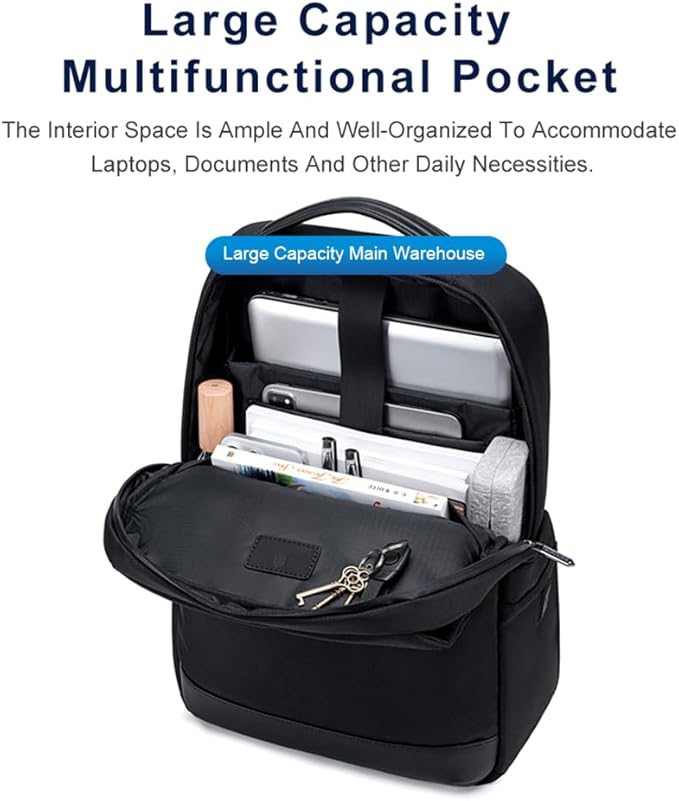 [حقيبة كمبيوتر محمول صغيرة وبسيطة] - تتميز هذه الحقيبة بسعة 10 لترات، وتحتوي على جيبين بسحاب، وجيب رئيسي، وجيب أمامي مخفي لتنظيم الكمبيوتر المحمول والكتب وجهاز الآيباد وعلبة الطعام وغيرها من مستلزمات المكتب أو المدرسة. سهلة الحمل، وهي حقيبة عملية وبسيطة مناسبة للمكتب والجامعة. - [مقاومة للماء ومتينة] - صُنعت حقيبة الظهر هذه للكمبيوتر المحمول من قماش بوليستر متين مقاوم للماء، مزودة بسحابات معدنية مزدوجة. يتميز قماش البوليستر بنعومته ومتانته في آنٍ واحد، مما يجعل الحقيبة مقاومة للخدوش والتمزق والماء. تضمن لك استخدامًا آمنًا وطويل الأمد. مثالية للتسوق، والجامعة، والعمل المكتبي، والأنشطة الخارجية الأخرى.