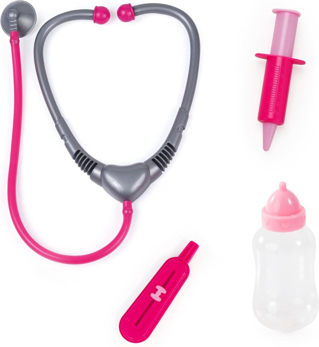 - لإضفاء جوٍّ رائع على لعب الأدوار، تتضمن المجموعة حقنة، وسماعة طبية، وزجاجة، ومقياس حرارة.