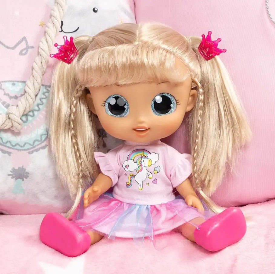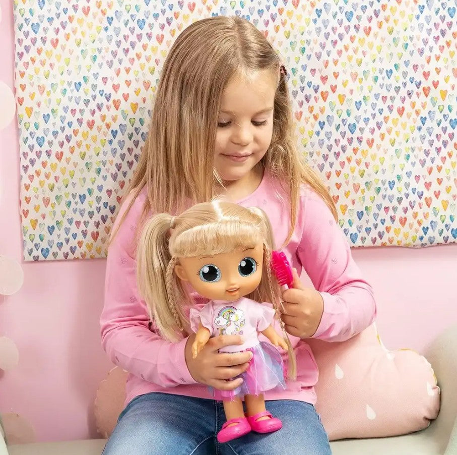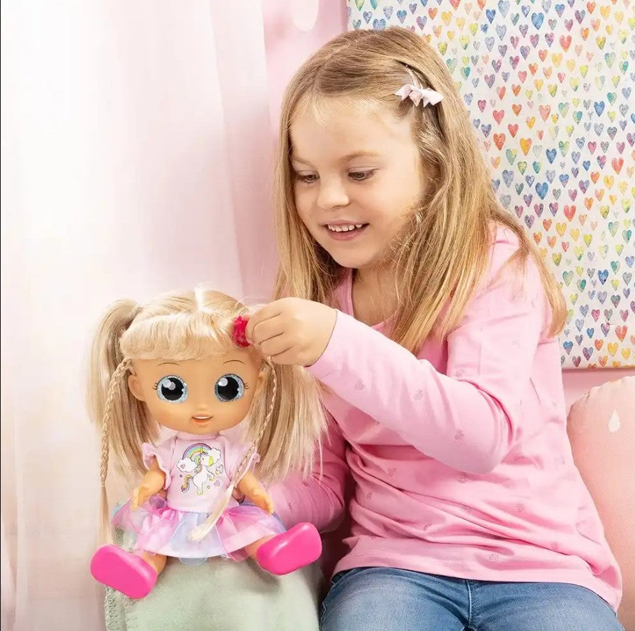 ستُحبّ الطفلة سيتي جيرل من النظرة الأولى. إذا ضغطتِ على بطنها، ستضحك أو تُقبّلكِ. يُمكن تصفيف شعرها الأشقر الطويل بالفرشاة المُرفقة أو بمشابك الشعر.