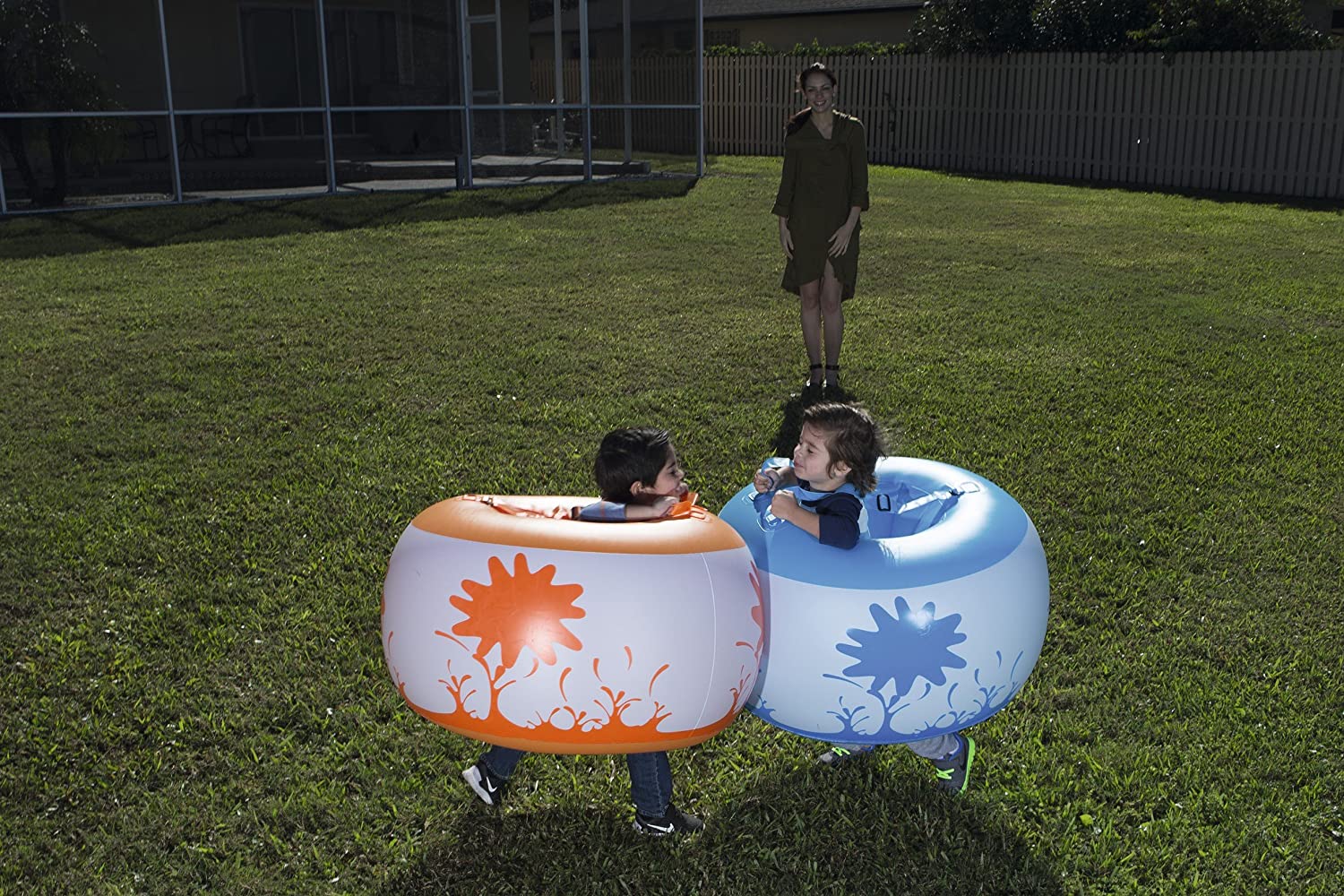 - لعبة ممتعة: ما عليك سوى نفخ البدلة وارتداء الزي والقفز أو الرقص بعيدًا عن صديقك؛ اصطدموا ببعضكم البعض بأمان دون أي إصابة.