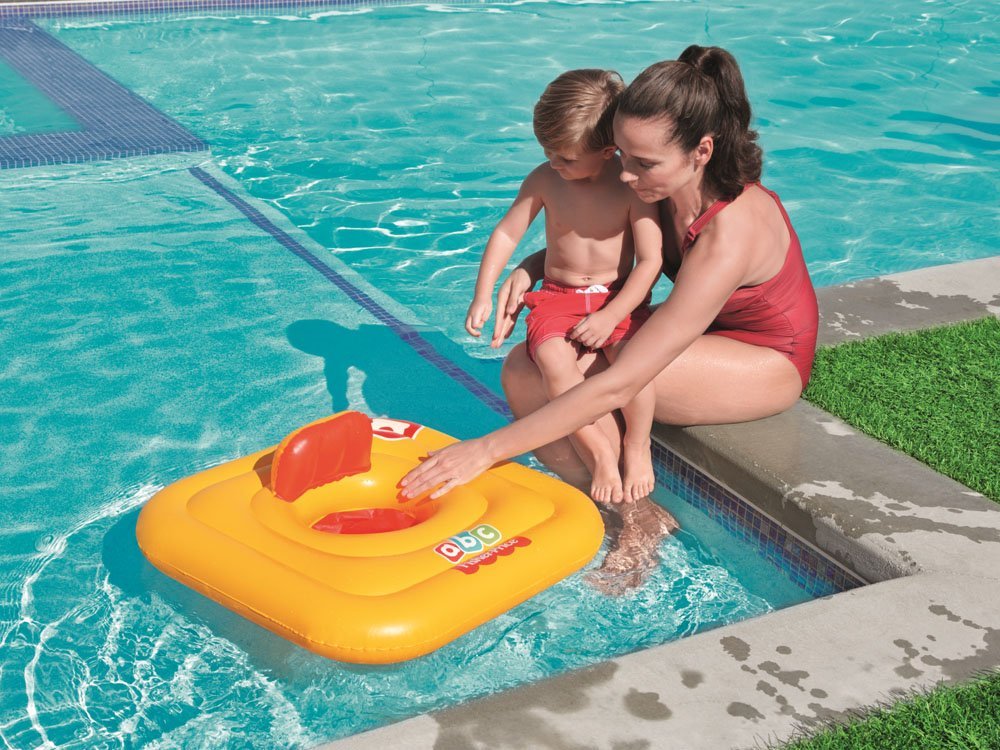 - مقعد السيارة العائم، بمقاس 69 × 69 سم، مُصمم للأطفال حتى عمر سنة واحدة. يُعد هذا المقعد القابل للنفخ خيارًا مثاليًا للطفل الذي يبدأ رحلته في السباحة. بفضل تصميمه الشبيه بالحفاضات، يُمكن للطفل اللعب في الماء بثبات وأمان.
