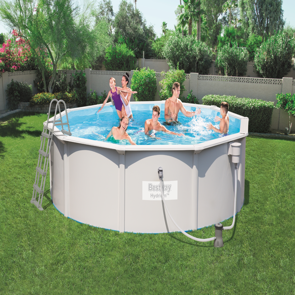 بيست واي 4.60 متر × 1.20 متر، رمادي/أبيض، هيدريوم. نوع المسبح: مسبح بإطار، الشكل: دائري، السعة: 17430 لترًا. قدرة الترشيح: 3000 لتر/ساعة، قدرة المضخة: 32 واط، جهد المضخة: 220-240...