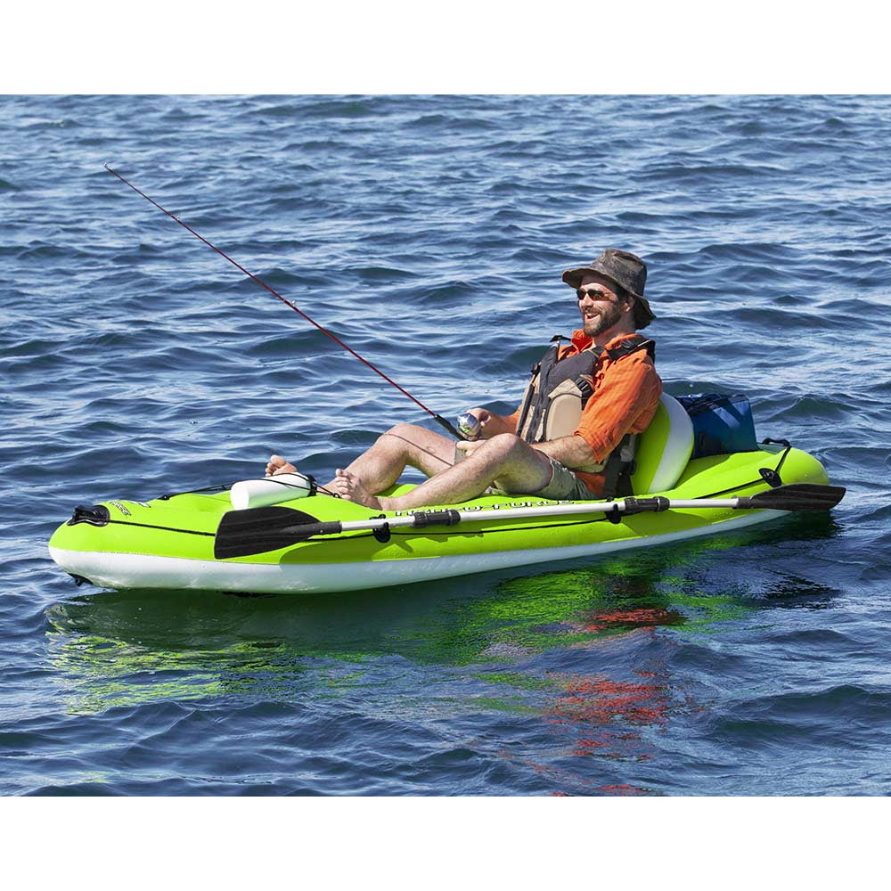 - يبلغ طول هذا الكاياك 2.70 مترًا وعرضه مترًا واحدًا، مما يجعله خيارًا ممتازًا لمن يرغبون في الجمع بين متعة الصيد والأنشطة المائية. وكأي كاياك من علامة Bestway التجارية، فهو مزود بكل ما تحتاجه لتجربة مائية آمنة وممتعة: مجداف مزدوج الشفرات، ورقعة إصلاح في حال حدوث ثقوب، ومضخة يدوية لنفخ سريع وسهل.