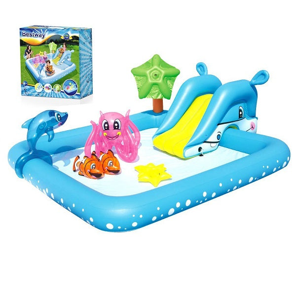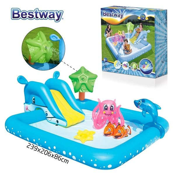 مسبح بيست واي القابل للنفخ للأطفال مع زحليقة، 239 × 206 × 86 سم - رقم: 53052