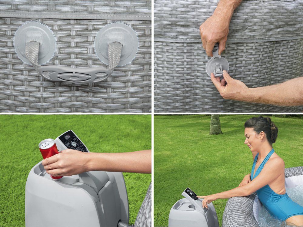 يُعدّ حوض الاستحمام الساخن "لاي-زي-سبا هونولولو" من بيست واي الخيار الأمثل للاسترخاء وقضاء أوقات ممتعة مع العائلة أو الأصدقاء. يتسع هذا الحوض الرائع من 4 إلى 6 أشخاص، ما يتيح لك دعوة أحبائك للاستمتاع بأوقات مميزة معًا. يتميز "لاي-زي-سبا هونولولو" بنظام تدليك مريح مزود بـ 140 فوهة AirJet™ ونظام تسخين سريع يصل إلى 40 درجة مئوية. يضمن نظام الجدران DuraPlus ثباتًا ممتازًا ويحافظ على شكله حتى بعد إعادة ملء الحوض أو تفريغه عدة مرات. بالإضافة إلى ذلك، يضفي تصميم الروطان لمسة فاخرة تُعزز جمالية الحوض. كما يتضمن "لاي-زي-سبا هونولولو" وحدة تحكم رقمية للمضخة مع لوحة تحكم إضافية، ما يُتيح لك التحكم بسهولة في درجة الحرارة ونظام التدليك دون الحاجة إلى مغادرة الحوض. ويشمل أيضًا غطاءً للحفاظ على درجة حرارة الماء المثالية، ومقبضين لسهولة حمل الحوض وهو فارغ، وجدارًا مُضلّعًا لمزيد من الراحة والسهولة.