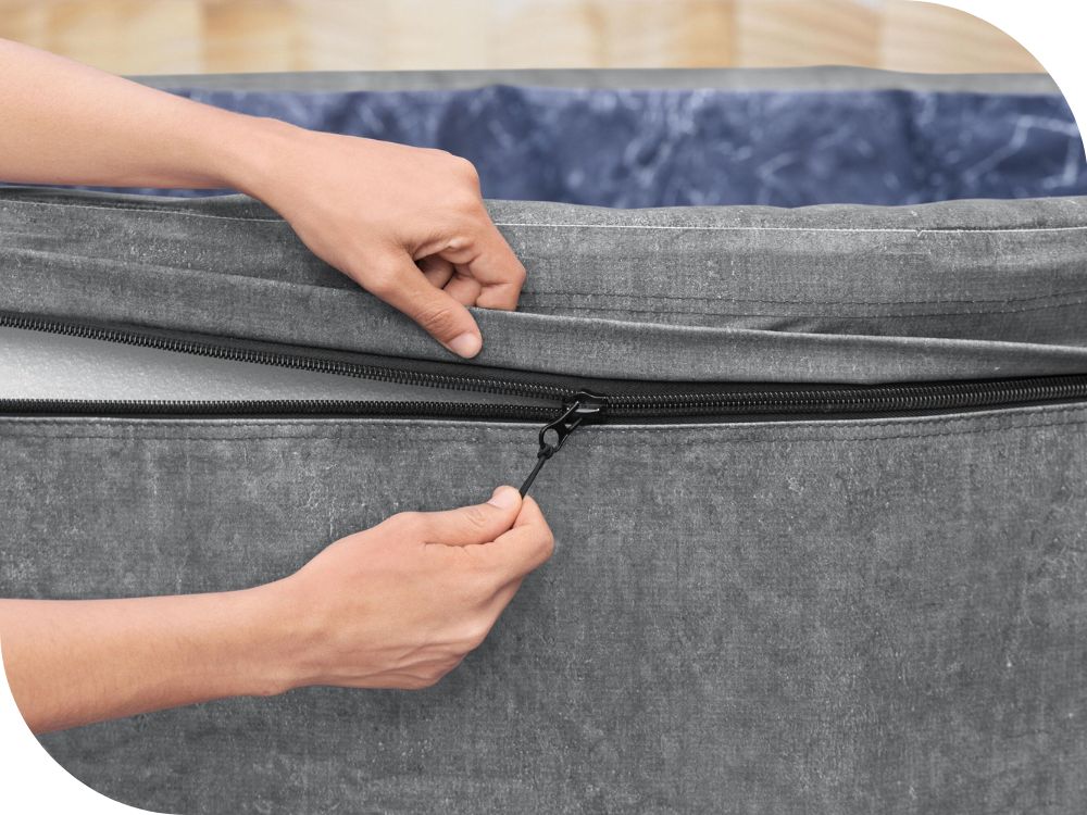 - صُنع حوض الاستحمام من عازل رغوي، مما يوفر احتفاظًا استثنائيًا بالحرارة ويضمن متانة المنتج وقوته. وهذا ما يجعل هذا الطراز من أحواض الاستحمام أكثر كفاءة في استهلاك الطاقة بنسبة تصل إلى 60% مقارنةً بالنماذج التقليدية القابلة للنفخ.