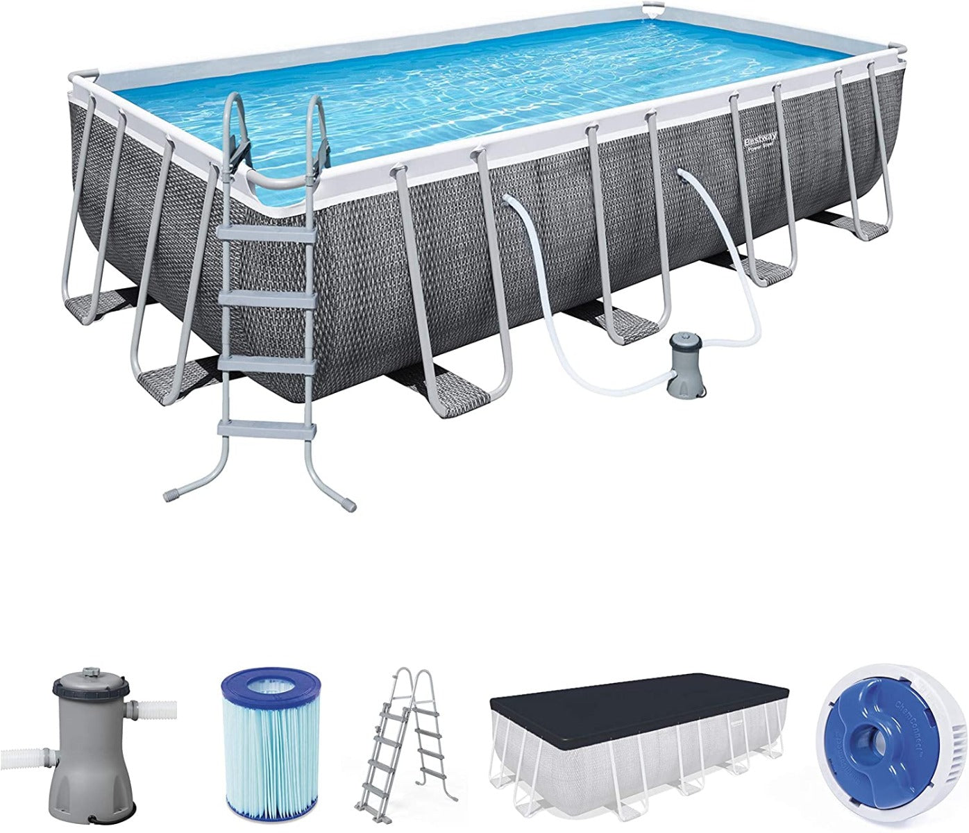 مسبح بيست واي ذو إطار معدني فوق الأرض، مصنوع من الفولاذ المقاوم للصدأ، أبعاده 4.88 متر × 2.44 متر × 1.22 متر - رقم: 56996