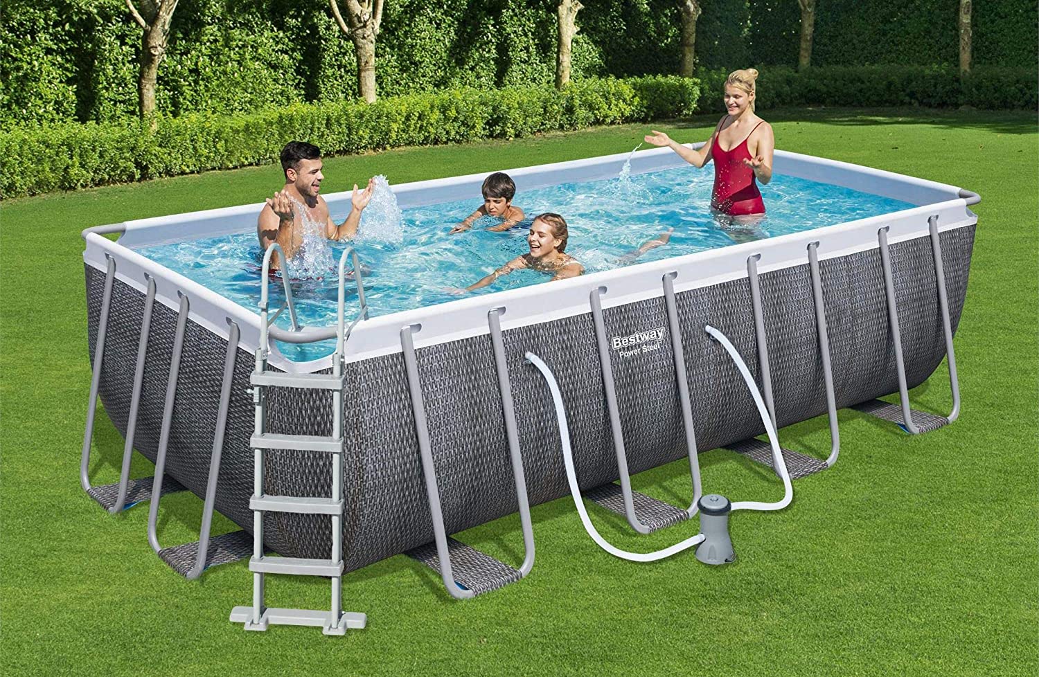 - حوض السباحة ذو الإطار Bestway 56996 هو نموذج مستطيل ذو أبعاد كبيرة ويمكن تركيبه في أي منزل صيفي أو منطقة محلية.
