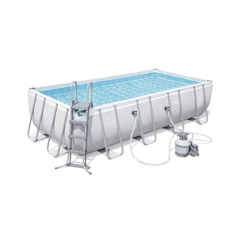 مسبح بيست واي باور ستيل 56466 فوق الأرض، مسبح بإطار مستطيل 14812 لتر، أزرق، رمادي: