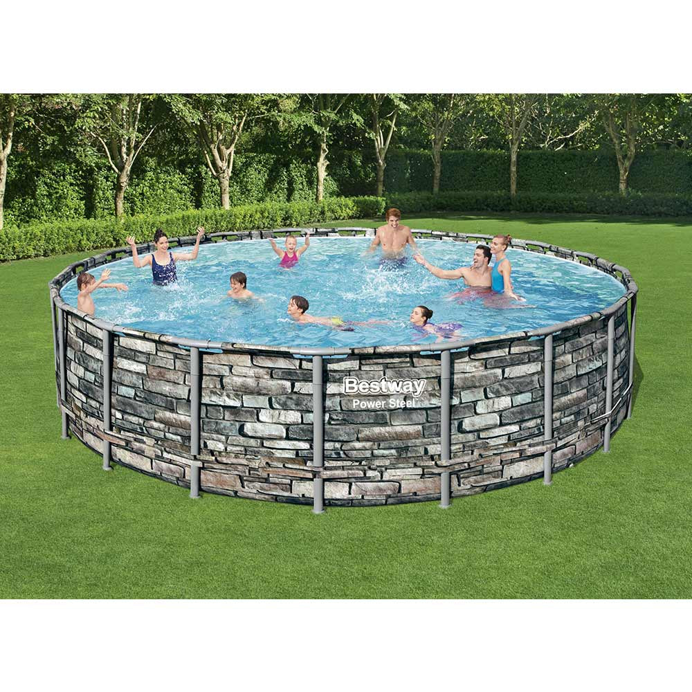 مسبح بيست واي باور ستيل دائري فوق الأرض مصنوع من الفولاذ، أبعاده 610 × 132 سم - رقم: 56883