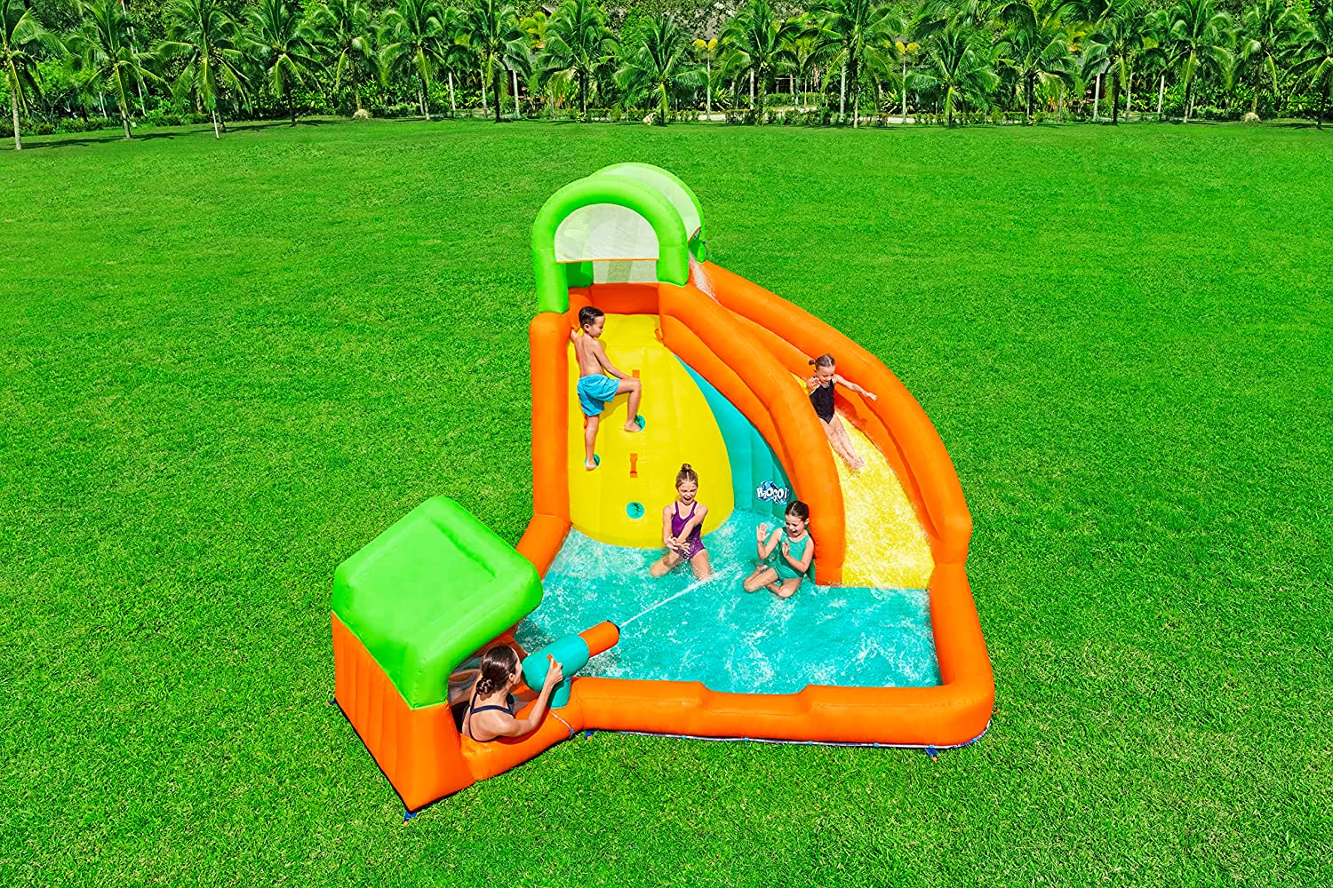 - سيحب الأطفال الصغار النشيطون الزحليقة القابلة للنفخ للانزلاق إلى المسبح وجدار التسلق للصعود إلى قمة المركز المائي القابل للنفخ.
