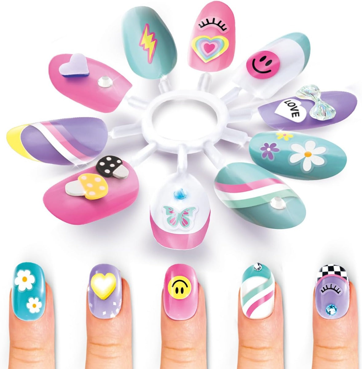 انتظري بضع ثوانٍ وستكون إبداعاتك جاهزة! ألصقيها على أظافرك، ثم انزعيها وأعيدي وضعها. متعة إبداعية لا تنتهي! الكثير من الإكسسوارات مثل التعليقات واللؤلؤ والأحجار الكريمة للتزيين.
