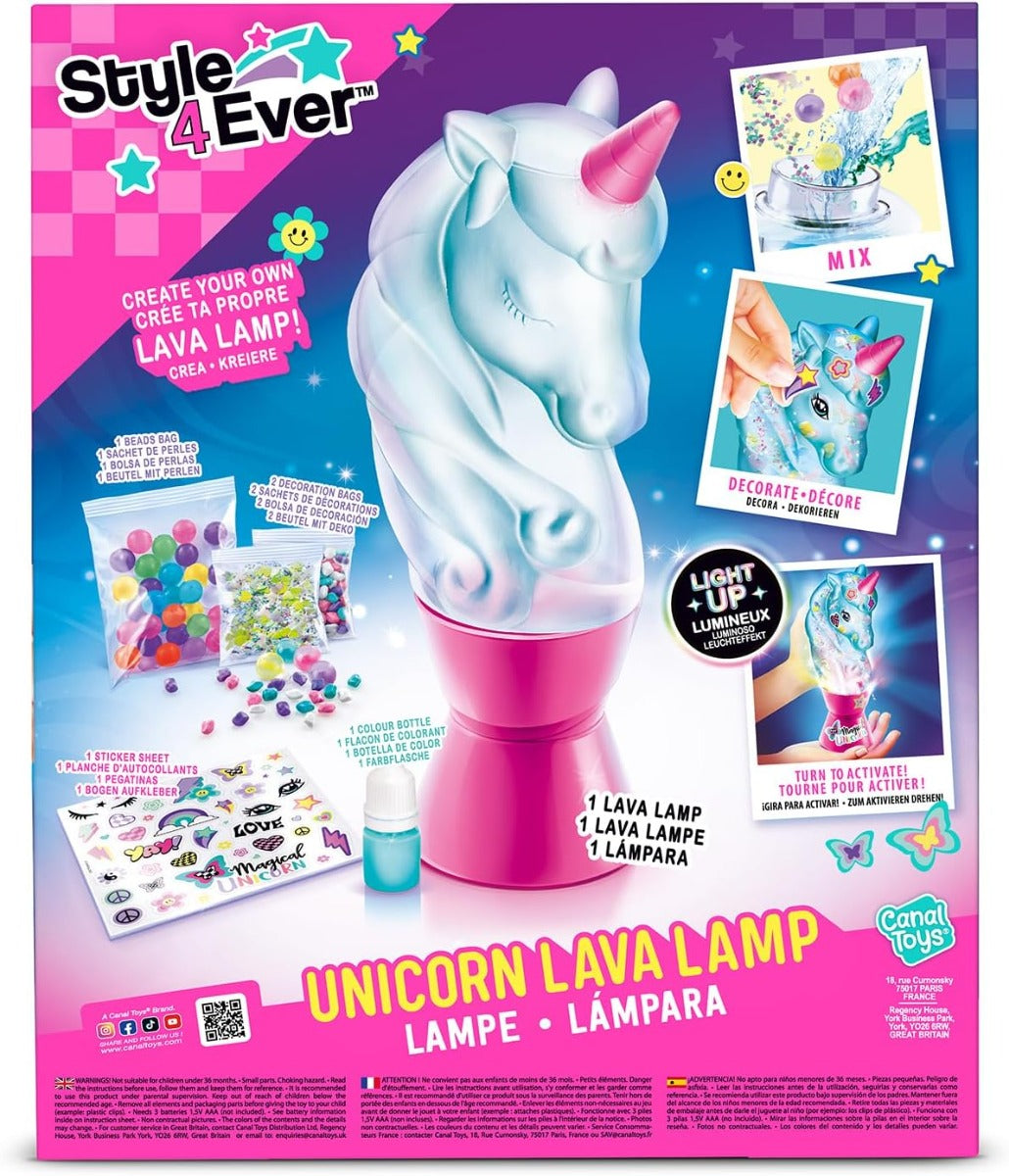 مصباح لافا يونيكورن من كانال تويز، اصنعه بنفسك، زيّن لعبة مصباح اللافا الخاصة بك