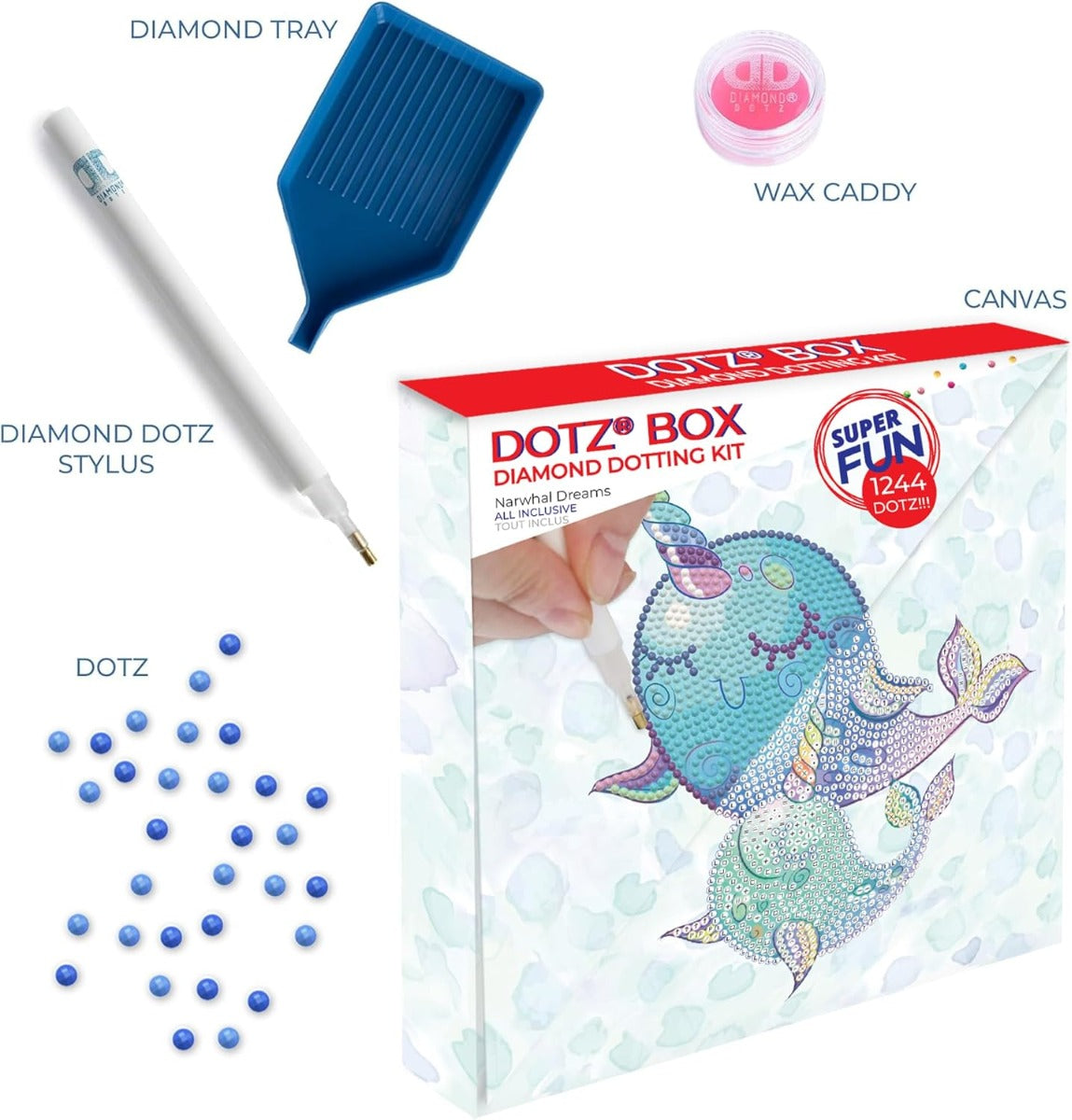 - مجموعة دايموند دوتز ناروال دريمز دوتس بوكس، نقاط دائرية، مجموعات الرسم بالألماس، مجموعات فن الألماس - رقم: DBX008