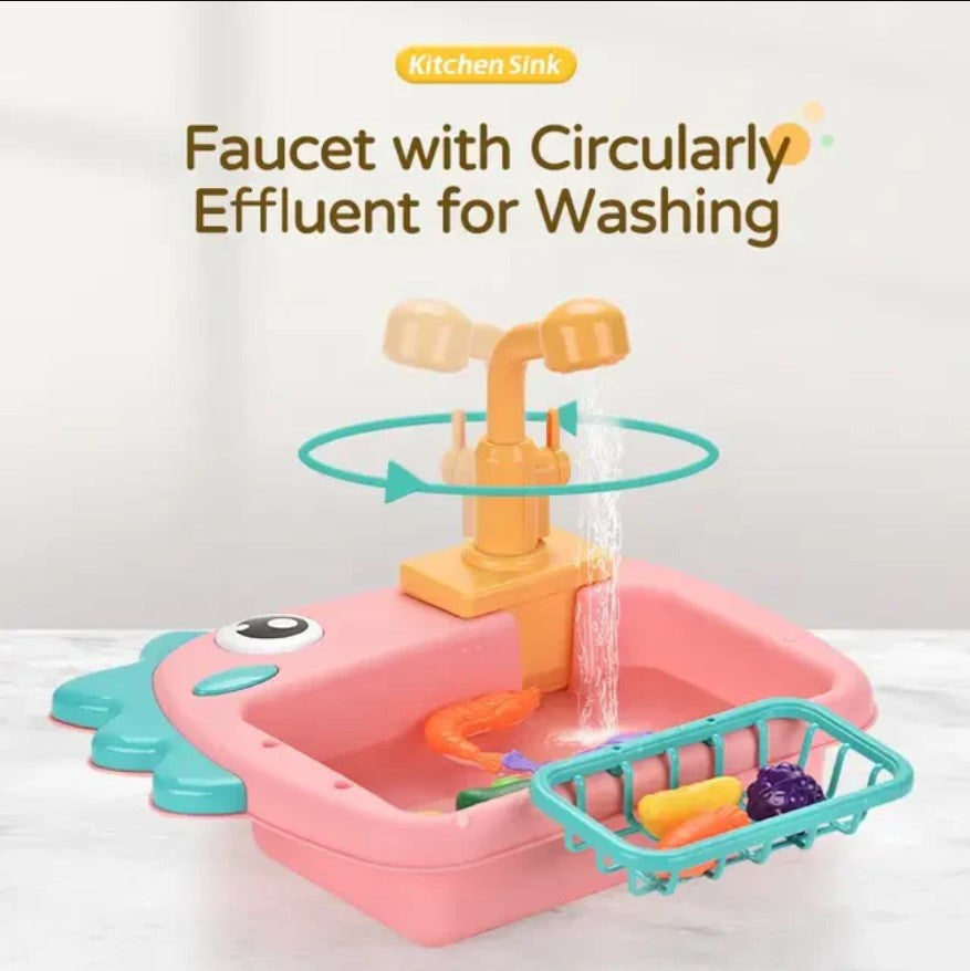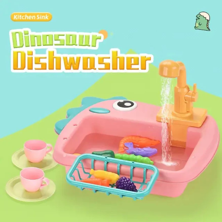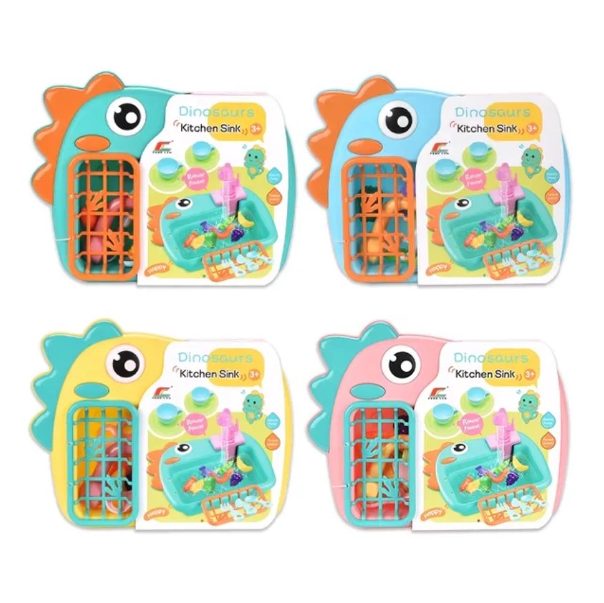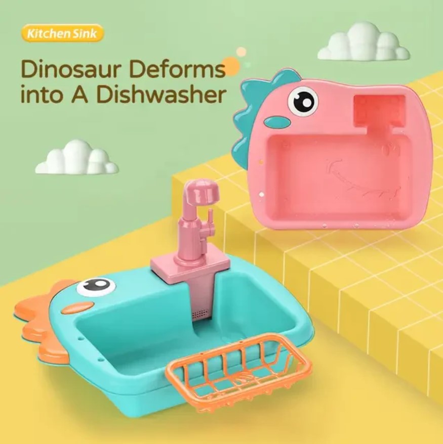 طقم حوض مطبخ بتصميم ديناصورات مع تدفق مياه أوتوماتيكي - قطعة واحدة - رقم: 6069