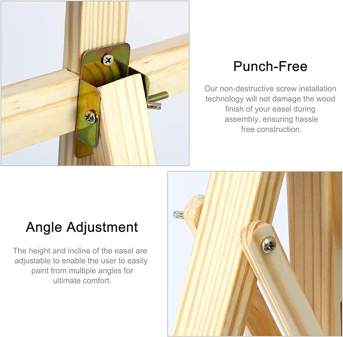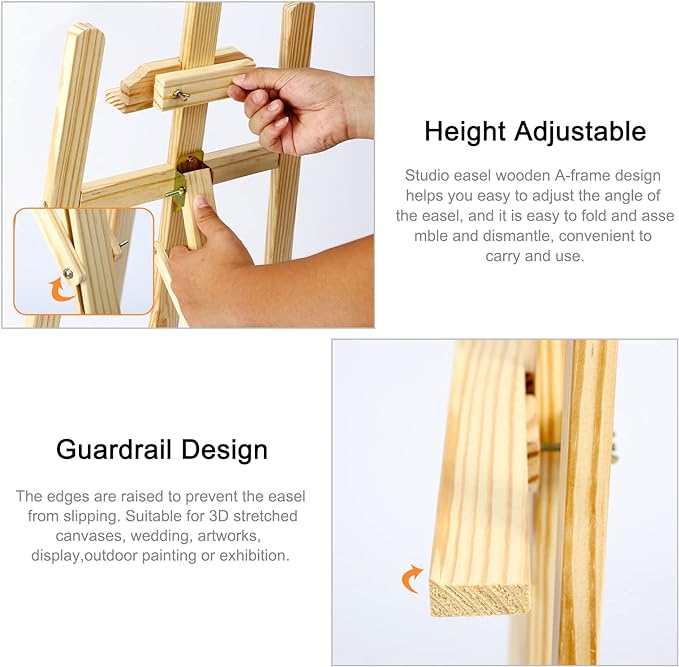 - 【سهل التركيب وموفر للمساحة】: يسهل تركيب حامل الرسم باتباع تعليمات التشغيل. يمكنك إتمام التركيب في وقت قصير. بعد الاستخدام، يمكن طي حامل الرسم الخشبي، مما يجعله موفرًا للمساحة بشكل كبير.