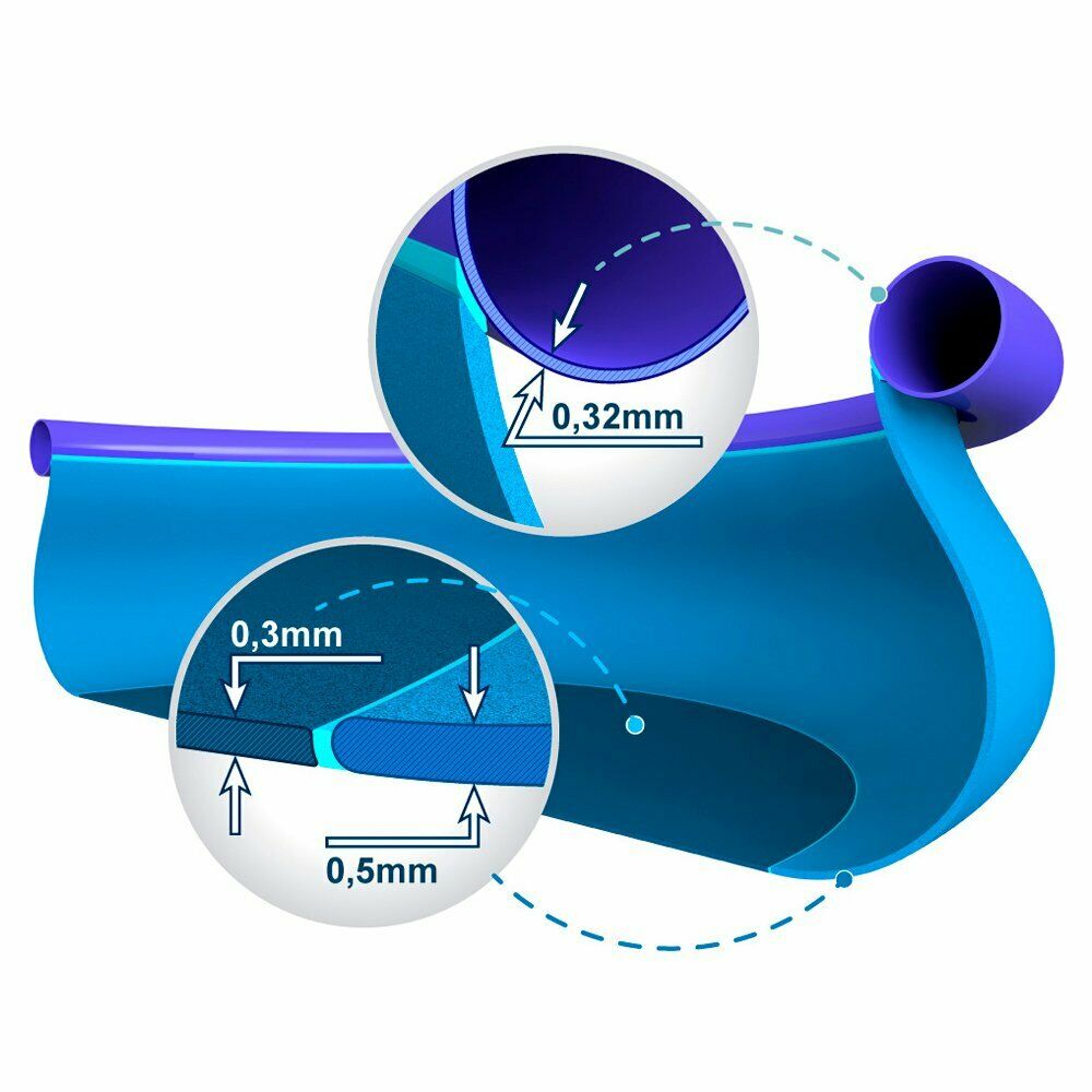 - تم تصنيع طبقات طلاء حمامات السباحة من إنتكس بتقنية فائقة المتانة تتكون من ثلاث طبقات من مادة PVC عالية الجودة والبوليستر فائق القوة، مما يوفر قوة ومتانة كبيرتين.