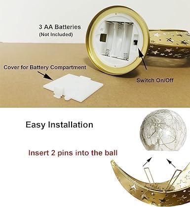 درجة حرارة اللون: أبيض دافئ، نوع الإضاءة: LED، نوع المفتاح: تشغيل/إيقاف في الأسفل، عدد مصابيح LED: 10، البطارية: 3 بطاريات AA، المادة: قفص معدني + مصباح عشبي ذو شقوق