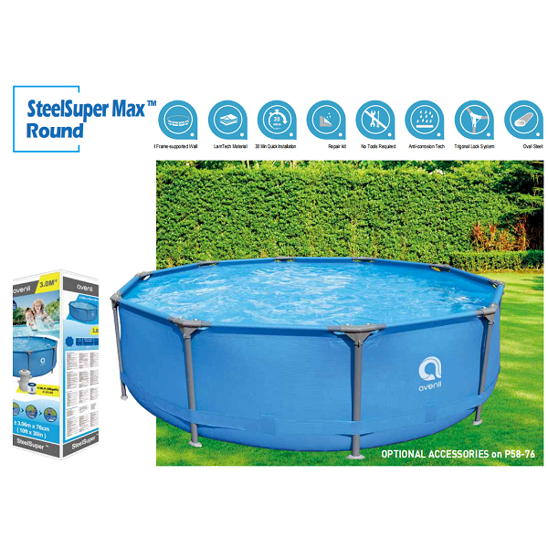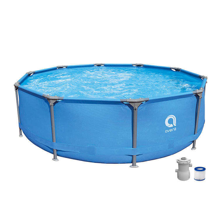 طقم مسبح جيلونج أفينلي ذو الإطار الدائري 3.05 × 76 سم - رقم: 12015EU، هو الحجم المثالي للعائلة أو مجموعة صغيرة من الأصدقاء. يأتي هذا الطقم بكل ما تحتاجه لتجربة سباحة رائعة، بما في ذلك المسبح والمضخة وخرطوشة الماء. المسبح مصنوع من البوليستر عالي الجودة وقاع من مادة PVC المتينة لضمان متانته وطول عمره. سهل التركيب، ويأتي مع طقم إصلاح وعلبة ملونة. تبلغ سعة الماء 1235 جالونًا (4672 لترًا) عند ملئه بنسبة 80%. سيوفر هذا الطقم ساعات من الترفيه والمرح للجميع.