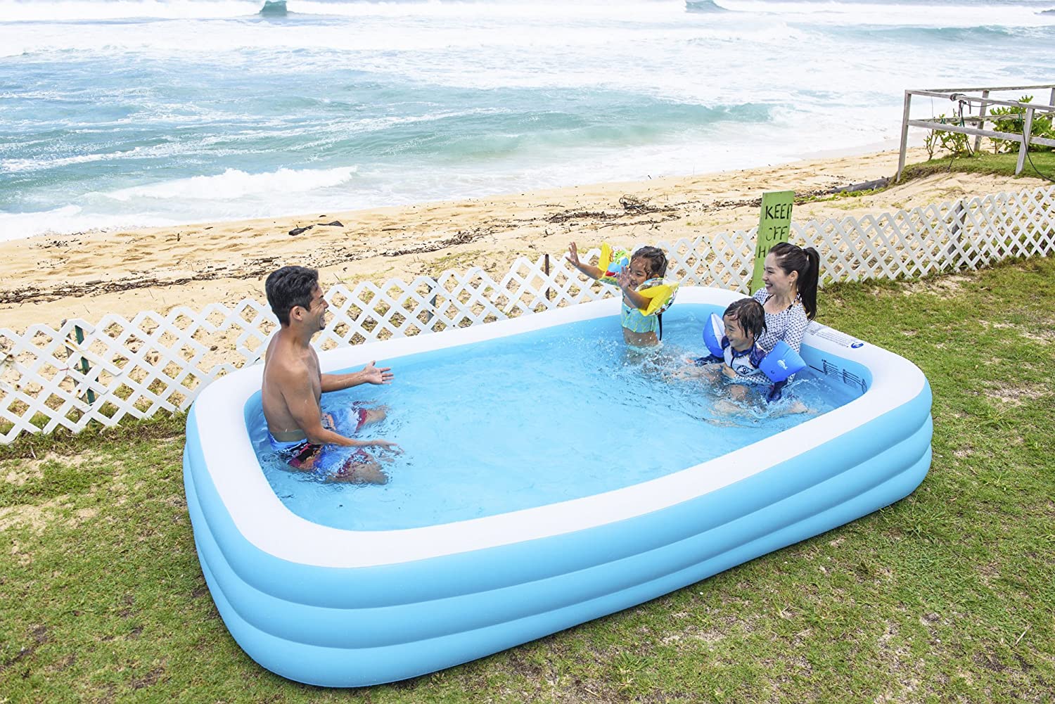 - - مسبح جيلونج قابل للنفخ بحجم عائلي، مقاس 305 × 183 × 56 سم.