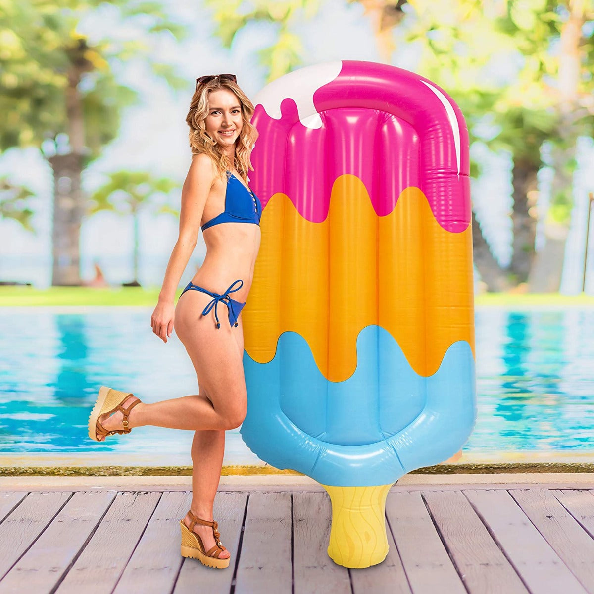 بساط جيلونج القابل للنفخ على شكل مصاصة مثلجة، عوامة حمام سباحة، مرتبة هوائية، لعبة شاطئية، 178 سم × 92 سم - رقم: 33068