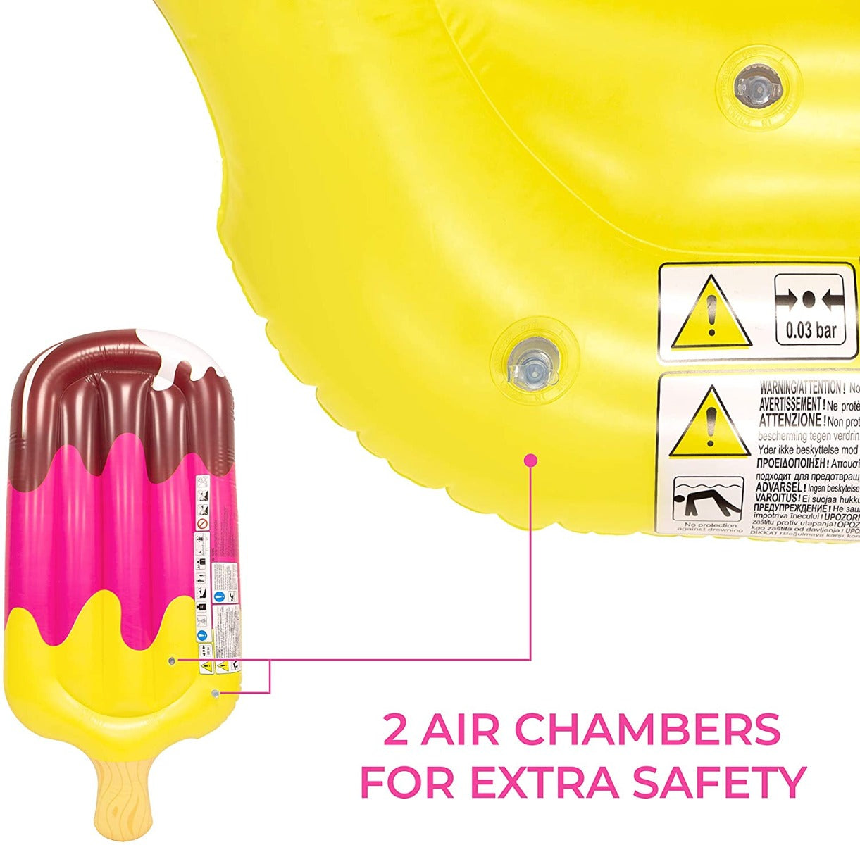 استمتع بالانتعاش والراحة في المسبح مع مرتبة جيلونج الهوائية القابلة للنفخ على شكل مصاصة مثلجة - رقم 33068. هذه المرتبة مصنوعة من الفينيل عالي الجودة، بقياس 178 سم × 92 سم، وتتحمل وزنًا يصل إلى 80 كجم. مناسبة للأعمار من 14 عامًا فما فوق، وتحتوي على حجرتين هوائيتين لمزيد من الأمان. كما تتضمن رقعة إصلاح لتسهيل إصلاح أي ثقوب عرضية. مثالية للاسترخاء في المسبح أو البحيرة أو الشاطئ، ويمكنك استخدامها ككرسي لمزيد من الراحة. استمتع بأيام الصيف مع مرتبة جيلونج الهوائية القابلة للنفخ على شكل مصاصة مثلجة - رقم 33068!