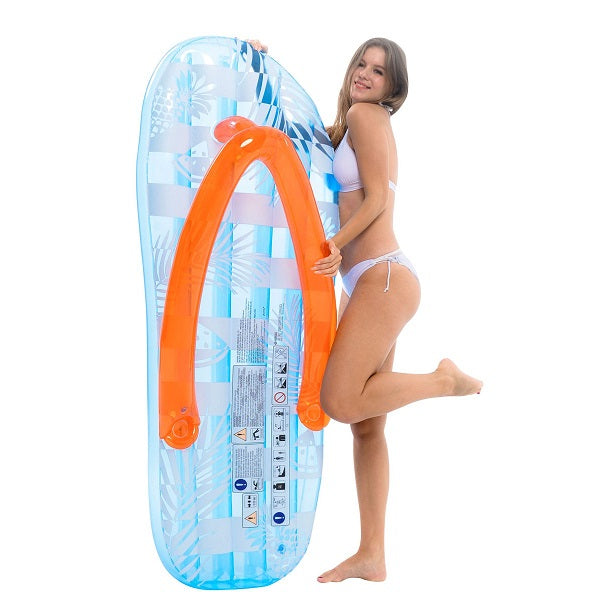 - تُعدّ هذه الشبشب القابلة للنفخ مثاليةً أيضاً لحمام السباحة، أو بجانب البحيرة، أو في منتجع ساحلي. فهي كبيرة الحجم لدرجة تسمح لك بالاستلقاء عليها لساعات، والاسترخاء على سطح الماء الأزرق.