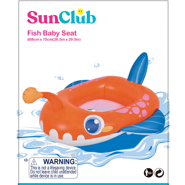 - مقعد أطفال قابل للنفخ على شكل سمكة من جيلونج صن كلوب®، 68 × 75 سم ، رقم: 32134 - قطعة واحدة