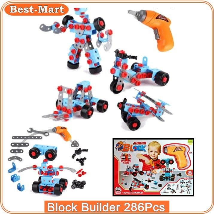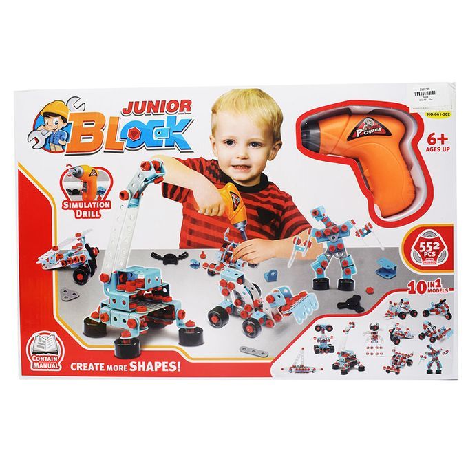 - مجموعة بناء. تتضمن 286 قطعة لتكوين ثلاثة أشكال مختلفة: روبوت، جرار، ودراجة نارية. تحتوي المجموعة على مثقاب كهربائي يعمل ببطاريتين AA (غير مرفقتين). إنها لعبة تعليمية تركز على الرياضيات والعلوم والتكنولوجيا والهندسة. مناسبة للأطفال من عمر 6 سنوات فما فوق.
