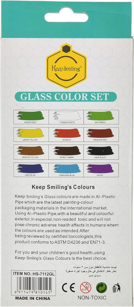 - مجموعة ألوان "ابتسم دائمًا" - ١٢ لونًا، أنبوب زجاجي بطول ١٢ مترًا، مع فرشاة واحدة - رقم المنتج: HS-94_7112GL
