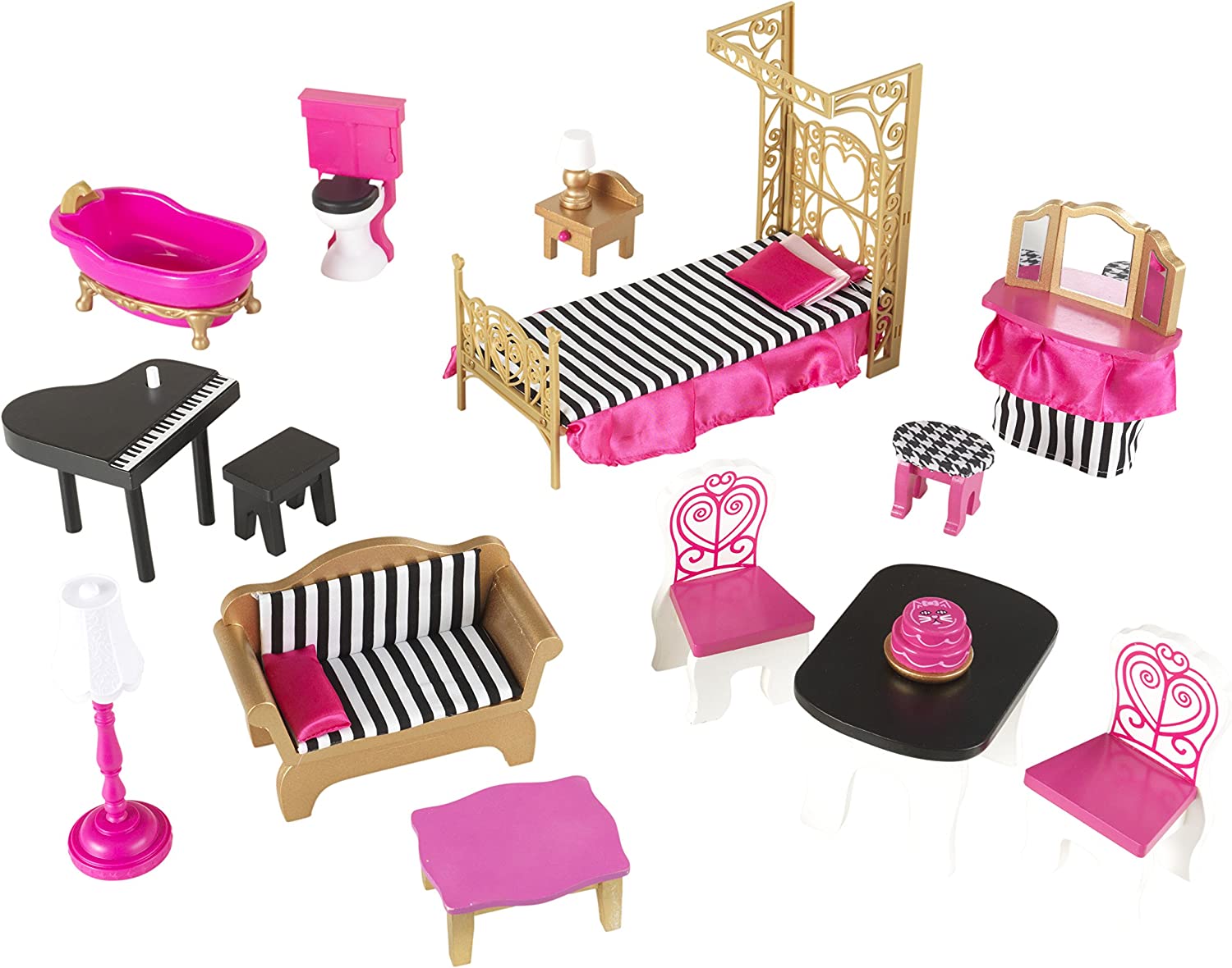 بيت الدمى الخشبي البلاستيكي من كيد كرافت بيلا، 16 قطعة - رقم: 65944