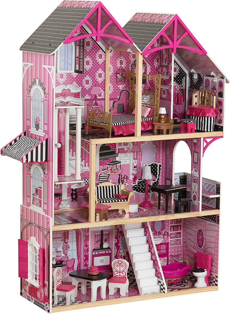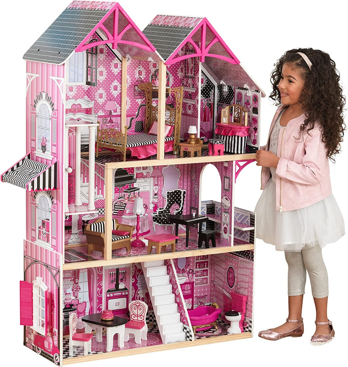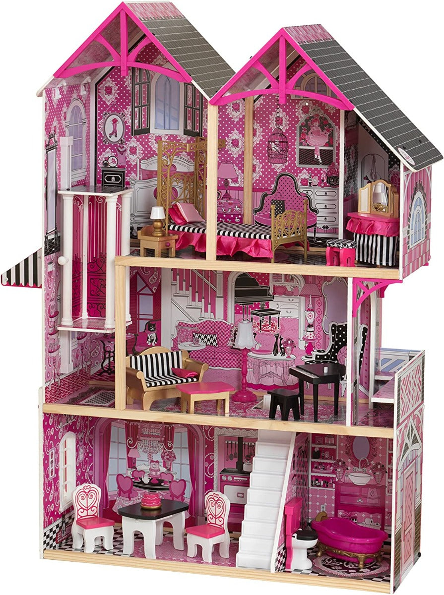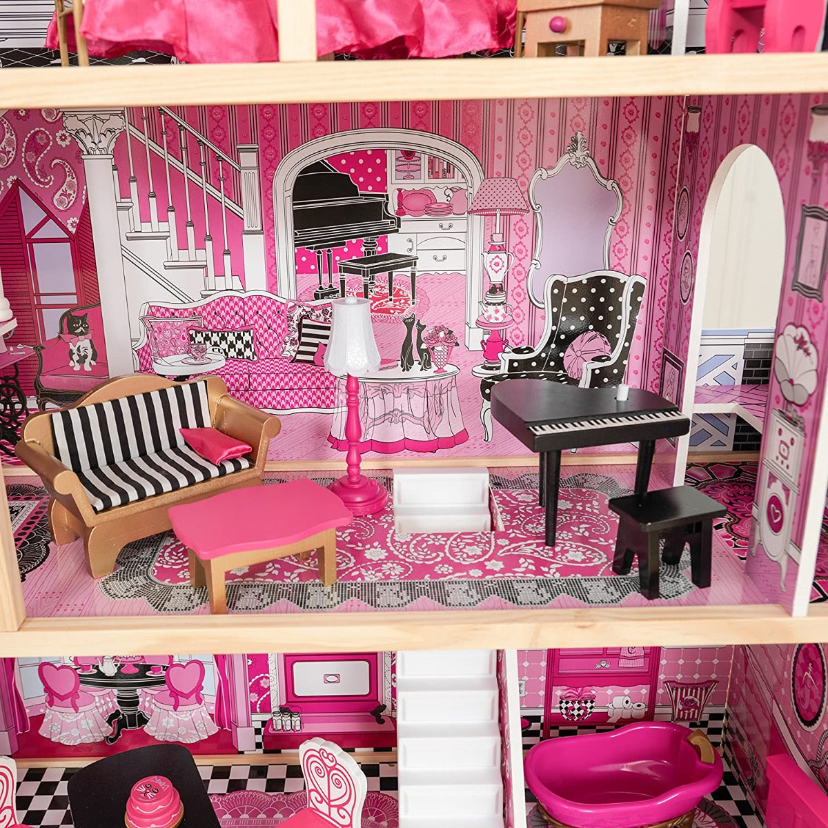 - بفضل المصعد المنزلق الذي يربط بين الطابقين الثاني والثالث، وتصميم السقف الرائع ذي الجملون المزدوج، والبيانو الذي يعزف الموسيقى، وغير ذلك الكثير، فإن بيت الدمى هذا مليء بالتفاصيل الخيالية.