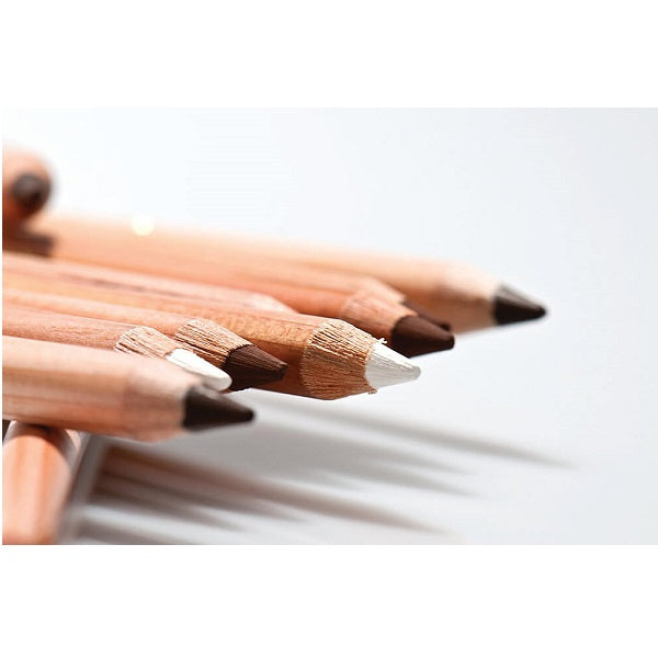 - قلم الباستيل الناعم هو أداة مصنوعة من صبغة ومواد رابطة ناعمة، مثل كربونات الكالسيوم، مغلفة بالخشب. ينتج عن ذلك لون زاهٍ قابل للمزج، وهو أصلب قليلاً من الباستيل التقليدي، مما يجعله مثاليًا للرسم الدقيق. تتميز أقلام الرسم الفنية من كوه-إي-نور بمجموعة من درجات اللون البني الداكن والأسود والأبيض والفحمي، وتنتج رسومات طباشيرية عالية الجودة. تتميز الأعمال الفنية المرسومة بأقلام الباستيل الناعمة وأقلام الرسم الفنية بهشاشتها الشديدة، وغالبًا ما تتطلب مثبتًا نهائيًا لمنع انتشار جزيئات الصبغة الدقيقة. ومع ذلك، فإن لوحات الطباشير والباستيل تصمد أمام اختبار الزمن، لأنها مصنوعة بتركيز أعلى من الصبغات النقية مقارنةً بالعديد من الوسائط الأخرى، وبالتالي تحافظ على جودتها الرائعة.