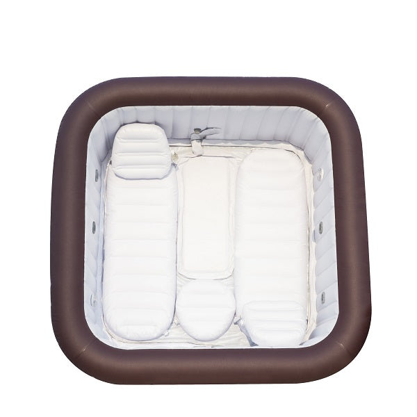 - المواصفات: السعة: 5-7 أشخاص بالغين، سعة الماء: 1050 لترًا (277 جالونًا)، الأبعاد بعد النفخ: 2.01 متر × 2.01 متر × 80 سم (79 بوصة × 79 بوصة × 31.5 بوصة)، معدل تدفق مضخة الفلتر: 1325 لترًا/ساعة (350 جالونًا/ساعة)، أقصى قدرة تسخين: 40 درجة مئوية (104 درجة فهرنهايت)، معدل تسخين نظام التسخين: 1.0-2.0 درجة مئوية/ساعة (2-4 درجة فهرنهايت/ساعة)، عدد فوهات الرش: 8 قطع، الوزن بعد النفخ: 1117 كجم (2463 رطلًا).