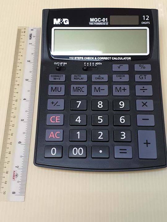 - تتميز آلة حاسبة M&G's ADG9875911 MGC-01 المكتبية ذات الـ 12 رقمًا بشاشة عرض كبيرة جدًا مكونة من 12 رقمًا تعرض حساب معدل الفائدة، والمجموع الكلي، وإعادة التشغيل التلقائي، وميزة التحقق والتصحيح المكونة من 112 خطوة مع طاقة مزدوجة أي البطارية والطاقة الشمسية.