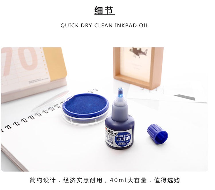 زيت الطباعة سريع الجفاف M&G Chenguang 40 مل، أزرق 3 - رقم المنتج: AYZ97511، منتج عالي الجودة مصمم لتوفير طريقة طباعة سهلة وفعالة. يتميز هذا المنتج بوسادة حبر...