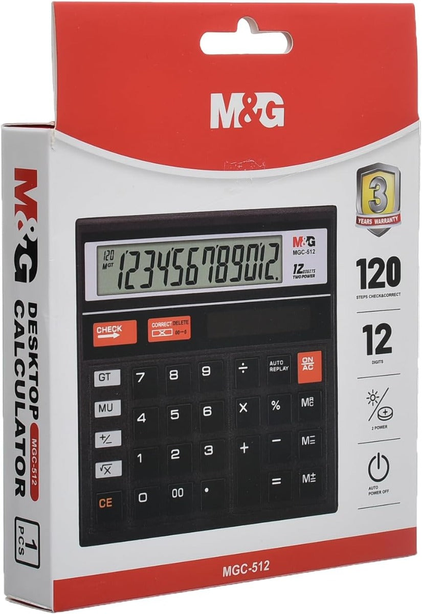 - تُعد آلة حاسبة M&G السوداء خيارًا موثوقًا به واقتصاديًا للاستخدام اليومي في المدرسة أو في المكتب.