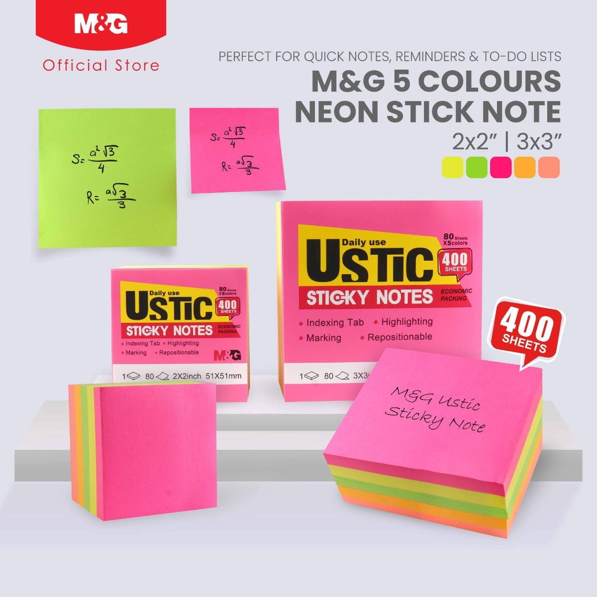 ملاحظات لاصقة نيون من إم آند جي تشنغوانغ، تدوم طويلاً، تلتصق بقوة، 400 ورقة، 76 × 51 مم، لاصقة صغيرة الحجم - رقم: YS-492