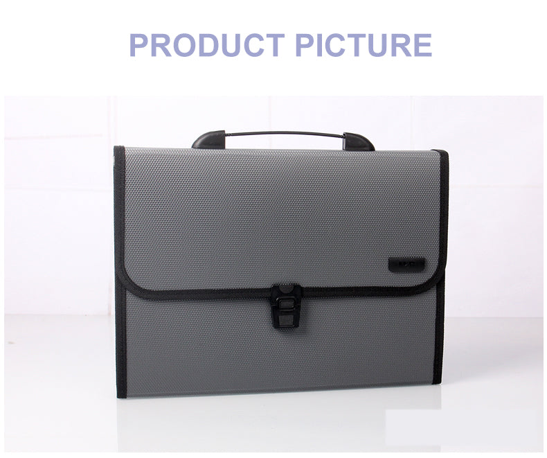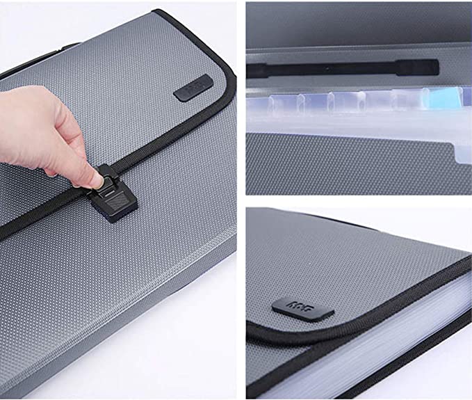 - مريح وعملي - يسهل المقبض المتين المرفق نقل المستندات الثقيلة. يُغلق الغطاء بإحكام على فتحات الجيوب بضغطة زر لمنع سقوط الأوراق، مما يوفر أمانًا إضافيًا. كما يتوفر شريط من العلامات الملونة لكل فتحة لتسهيل عملية الفرز والتصنيف.