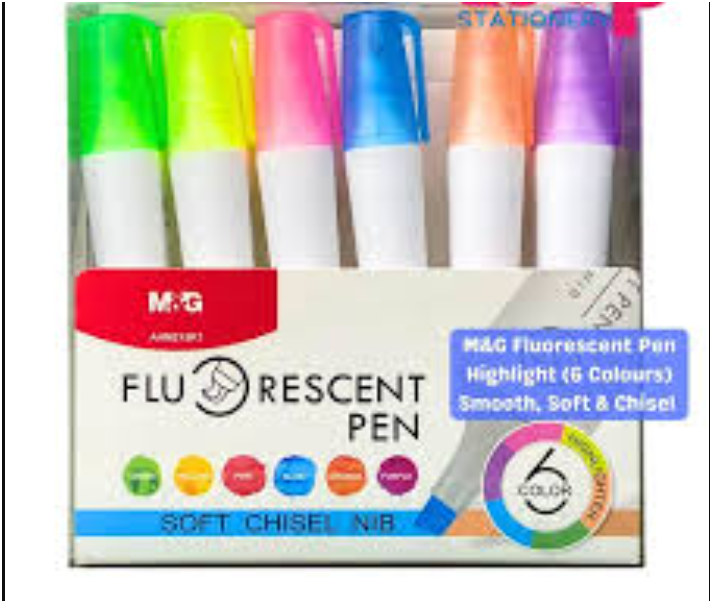 مجموعة أقلام التظليل M&G Chenguang، لتحديد النصوص بوضوح، رأس مشطوف، حبر غير سام، 6 ألوان - رقم المنتج: AHM215R1