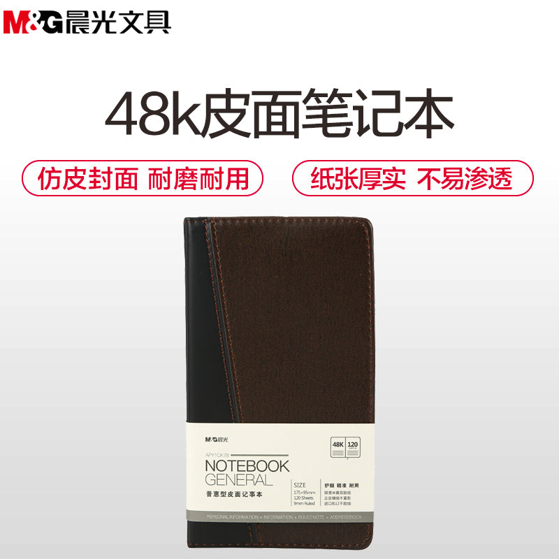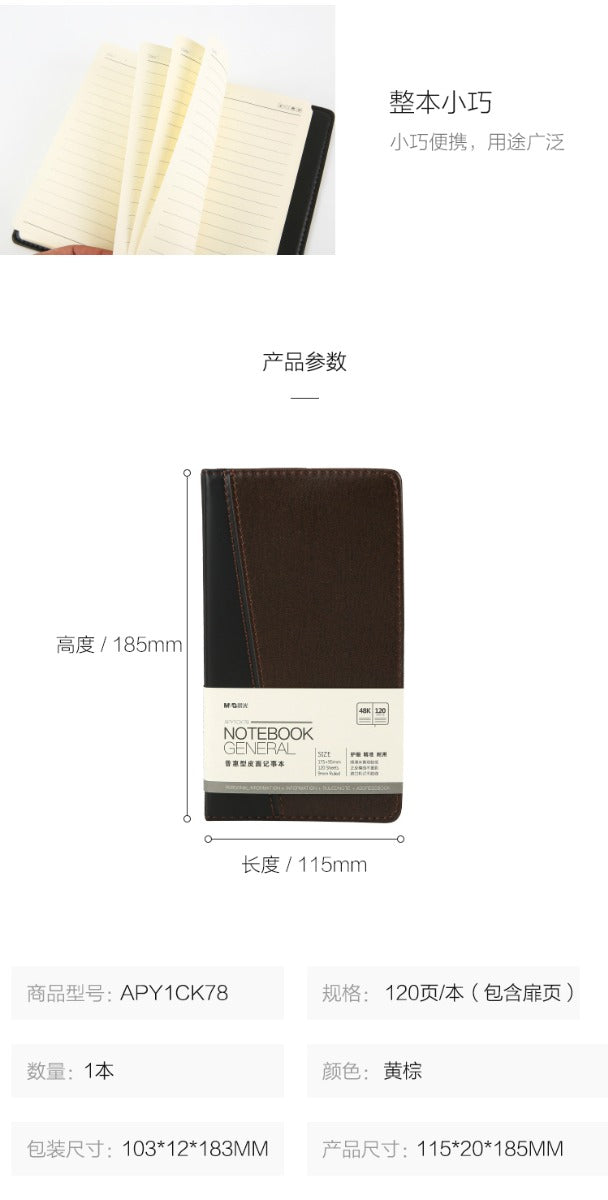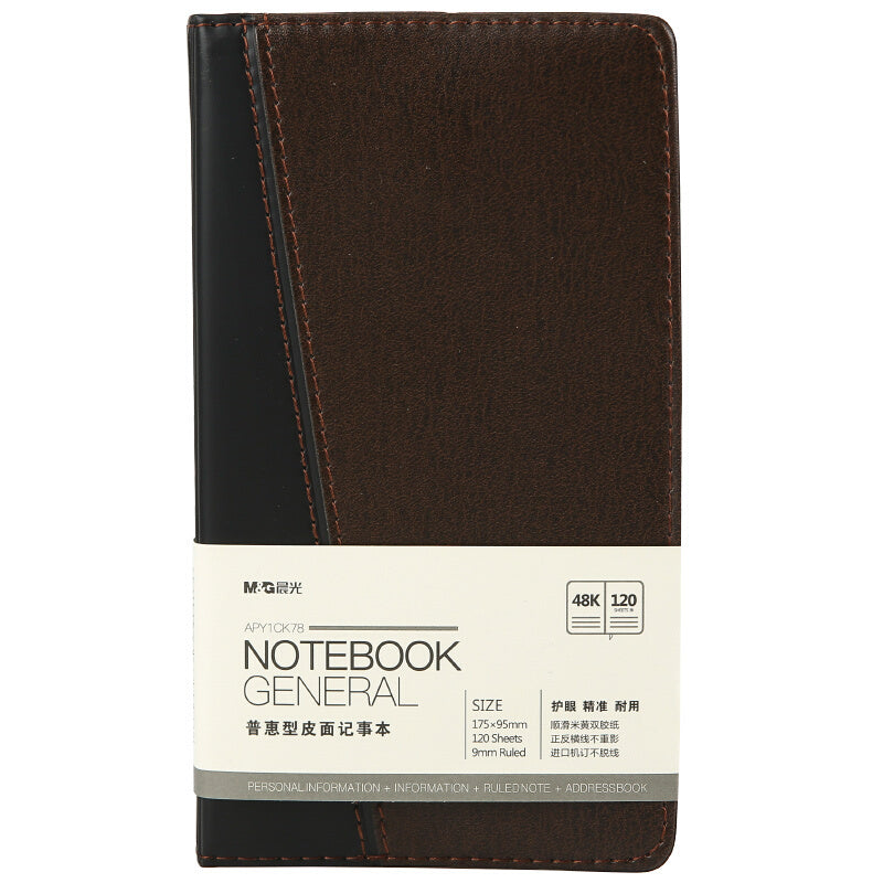 مفكرة M&G Chenguang الجلدية، 48K/120 صفحة، محاضر اجتماعات - 175*95 مم - رقم: APY1CK78